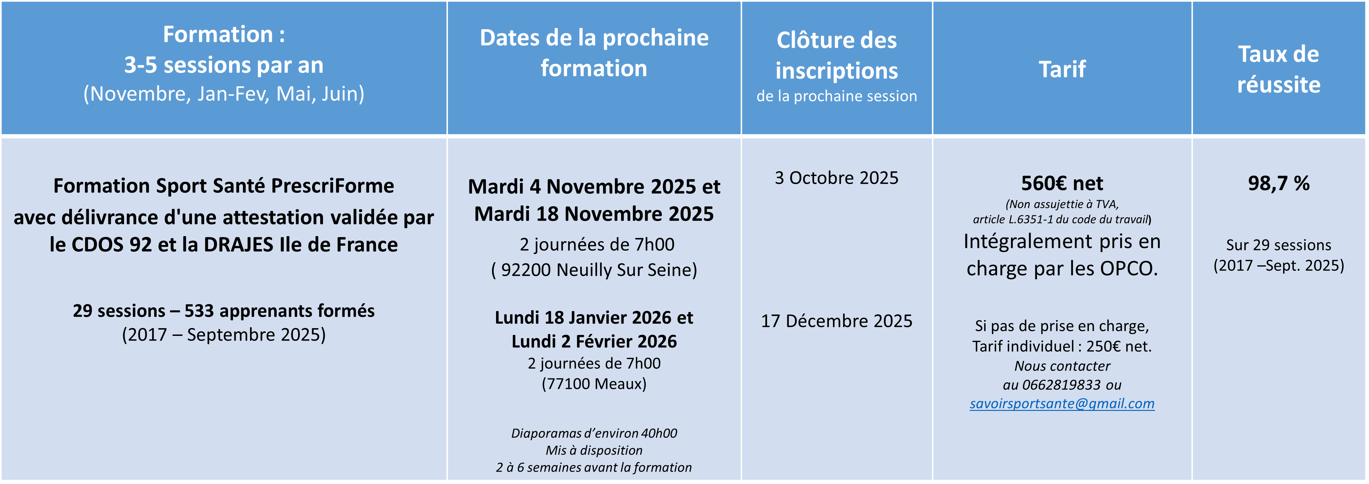 Madame Annick Di Scala: 0662819833, savoirsportsante@gmail.com